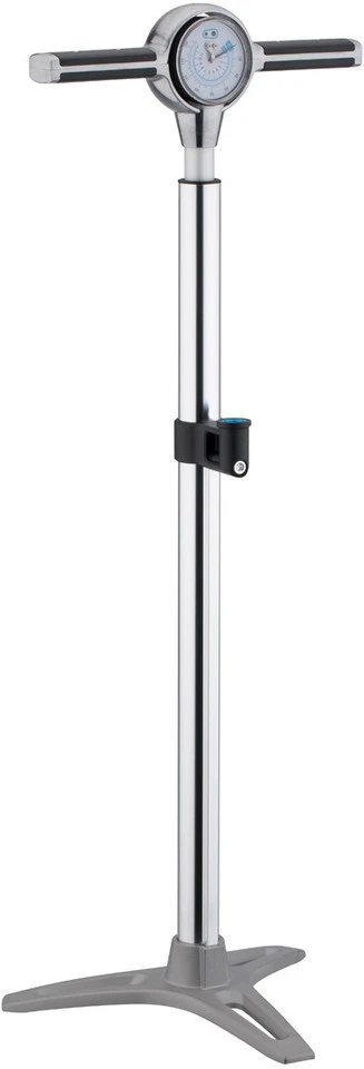 Spezifikationen:Druck max.:11 bar (160 psi)Pumpenkopf:universal für Schrader (Auto), Presta (frz.) und DunlopTechnische Daten:Maße:260 x 200 x 685 mmManometer:analog, obenGriff:T-GriffSchlauch:61 cmMaterial Zylinder:AluminiumMaterial Standfuß:Aluminium
