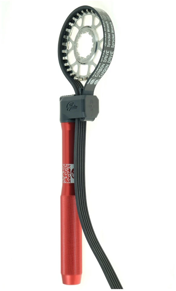 Der Bandschlüssel von Gates dient der schnellen und unkomplizierten Demontage der vorderen oder hinteren Riemenscheibe. Er hält das Ritzel sicher fest, während Du den Verschlussring löst.