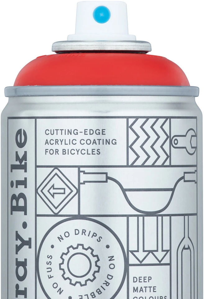 Spezifikationen:Bezeichnung:Spray Bike Acrylic Paint in AerosolAnwendungsgebiet:Rahmen, Gabel und alle zu lackierenden TeileFeatures:Acrylfarben-Gemisch mit sehr hoher Deckkraft: kräftige, matte FarbenTrockenpulverbeschichtung mit innovativer Anti-Tropf-Formelohne Grundierung anwendbarideal geeignet für Stahl, Aluminium und CarbonUV-resistentFarbübergänge, Schablonen- und Verblassungseffekte mühelos möglichkeine nachträgliche Hitzebehandlung notwendigmit 400 ml lässt sich ein gängiges Fahrrad inkl. Gabel mit einer Schicht lackierenAnwendung:wende Spray.Bike nur auf sauberen, trockenen Oberflächen anHandschuhe, Schutzbekleidung und Atemmaske tragenimmer im Freien lackierenSprühdose vor Gebrauch ca. 3 Minuten kräftig schüttelnvor Beginn 2 – 3 Testsprüher machenausschließlich mit Sprühdose in vertikaler Position sprühen (5 – 12 cm Sprühdistanz)Sprühdose während des Sprühvorgangs stets in Bewegung haltenvor Auftragen einer weiteren Schicht Farbe trocknen lassen (ca. 2 Stunden)vor Zusammenbau des Rades Farbe vollständig austrocknen lassen (ca. 12 Stunden)für bestes Ergebnis ca. 2 Stunden nach dem Sprühen Farbe mit einem fusselfreien Tuch vorsichtig polieren