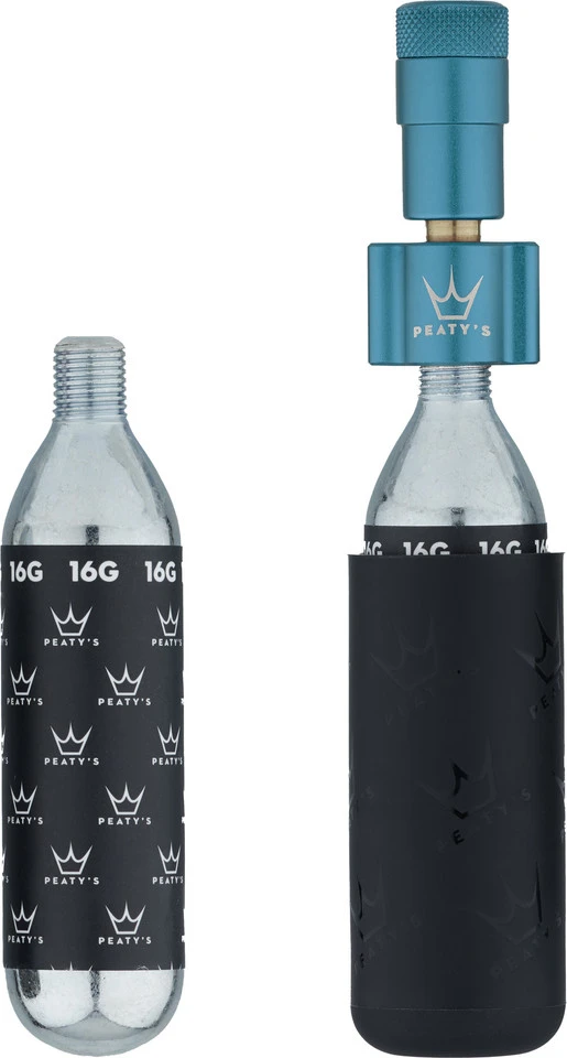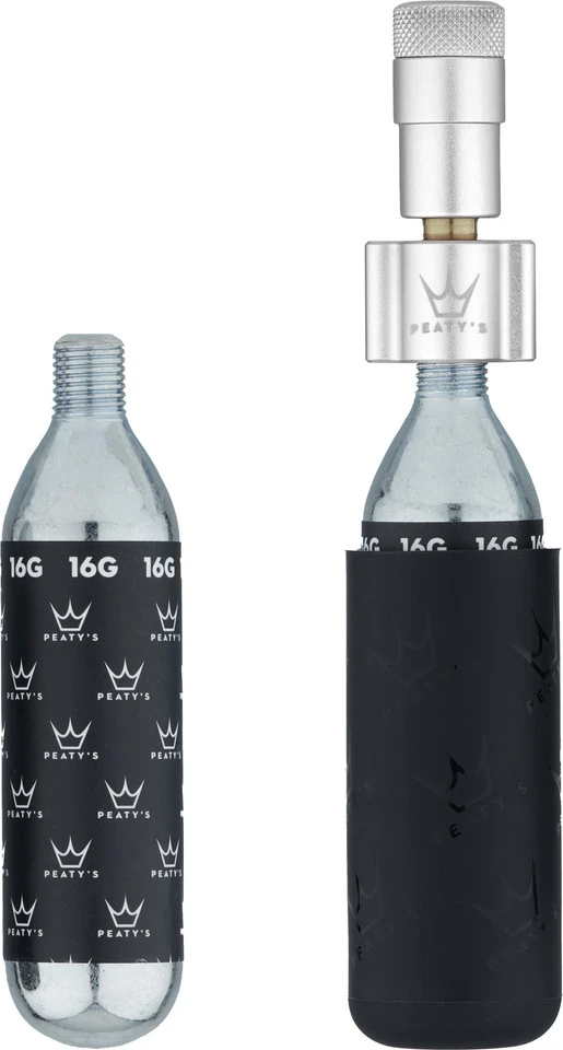 Lieferumfang:1 x Kartuschenpumpe Peaty’s Holeshot CO2 Tyre Inflator2 x CO2-Kartusche Peaty’s Holeshot CO2 Cartridge 16 g1 x Silikonhülle Peaty‘s