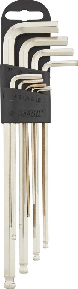 Lieferumfang:1 x Innensechskant-Schlüsselset Unior Bike Tools 220/3SLPH Kugelkopf lang, 9-teilig
