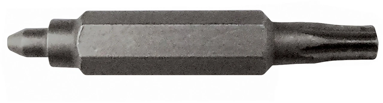 Diese Ersatzspitze für das Jagwire Einpresswerkzeug Needle Driver verfügt über zwei verschieden geformte Enden. Auf der einen Seite ist es kompatibel mit Standard-Stützhülsen, auf der anderen mit Torx-Stützhülsen (T8 oder T10 je nach Version). So kannst Du eventuell verschlissene Originalteile ganz einfach austauschen.