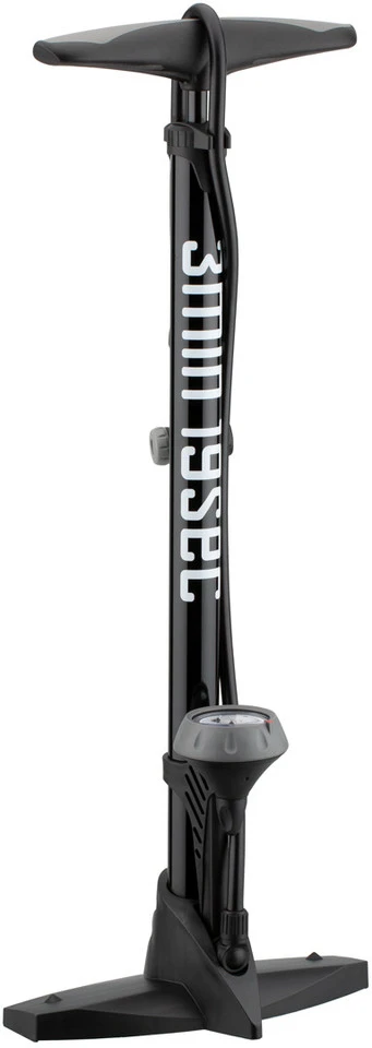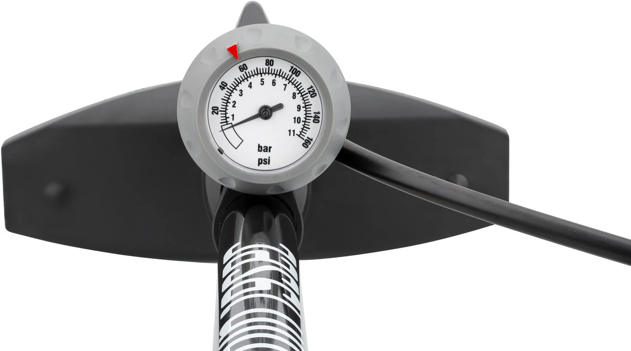 Spezifikationen:Druck (max.):11 bar (160 psi)Pumpenkopf:Presta, Schrader und DunlopTechnische Daten:Maße:62 x 24 x 15 cm (H x B x T)Manometer:analogGriff:T-Griff mit GummieinlagenSchlauch:95 cmMaterial Zylinder:StahlMaterial Standfuß:KunststoffLieferumfang:1 x Standpumpe 3min19sec