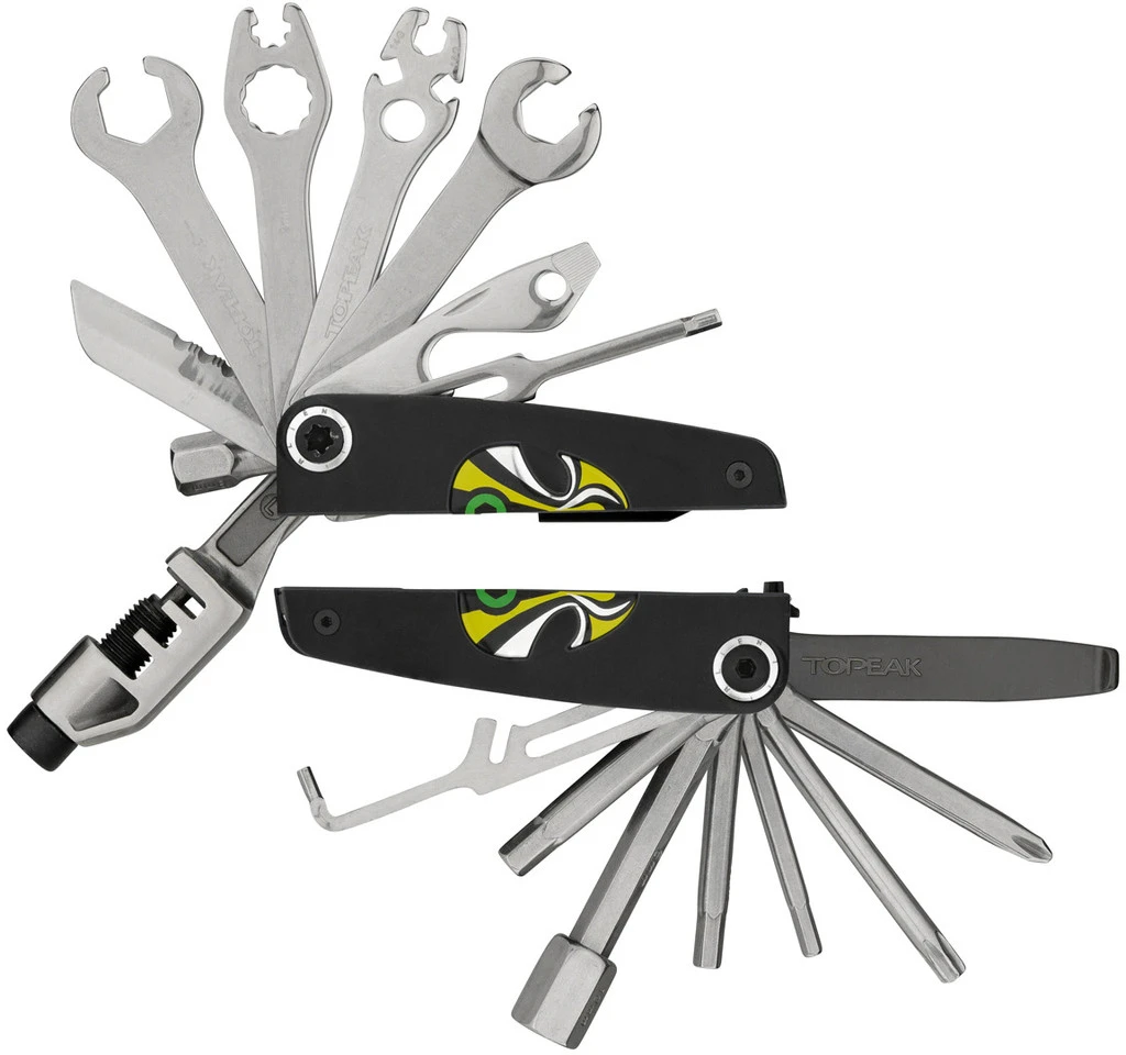Das Topeak Alien S Multitool ist ein mit 25 hochqualitativen Edelstahl-Werkzeugen ausgestattetes Profi-Tool für Wartung, Reparatur und Outdoor-Abenteuer, das durch sein zweiteiliges Design einfachen Zugriff auf alle Werkzeuge bietet.