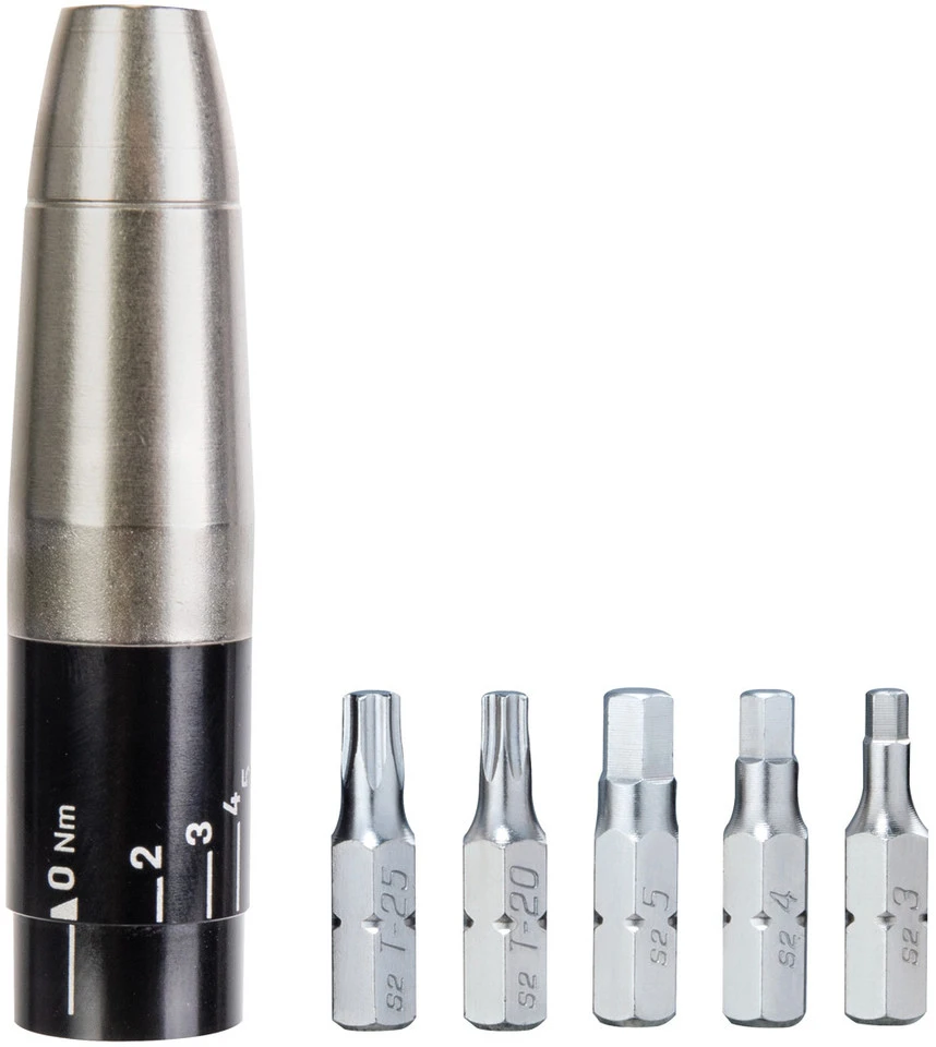 Kompakte, leicht ablesbare Drehmomenthülse, die aus jedem Mini-Tool mit 5 mm Innensechskant- Schlüssel einen vollwertigen Drehmomentschlüssel macht. Der verstellbare Einstellbereich von 2 – 6 Nm garantiert stets das richtige Drehmoment für die meisten Schraubverbindungen von empfindlichen Anbau- und teuren Carbonteilen.