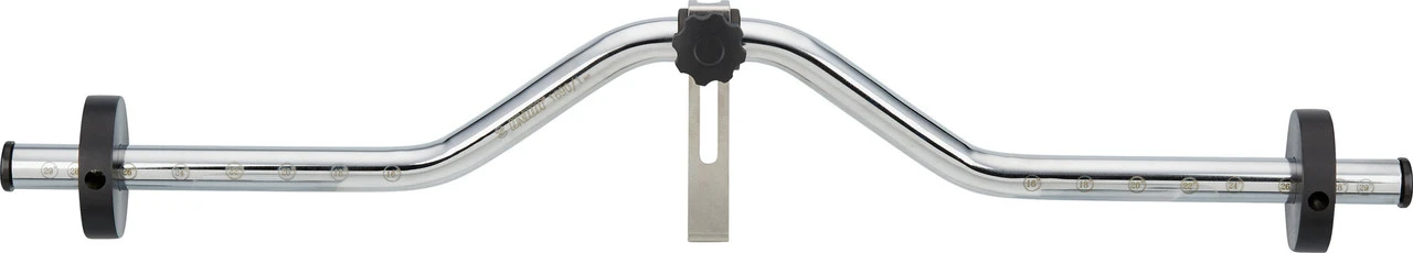 Die Zentrierlehre 1690/1 von Unior Bike Tools ist ein clever konstruiertes Prüfwerkzeug für Laufräder. Es eignet sich für Felgendurchmesser von 16 bis 29 Zoll und lässt sich auch bei montiertem Reifen einsetzen. Die Lehre arbeitet mit zwei Gleitbügeln zum Aufsetzen auf die Felge und einem mittigen Indikator für die Nabenachse. Drehst Du das Laufrad um und prüfst mit dem eingestellten Werkzeug auf der anderen Seite gegen, stellst Du sehr schnell fest, ob das Laufrad gut zentriert ist oder nicht.